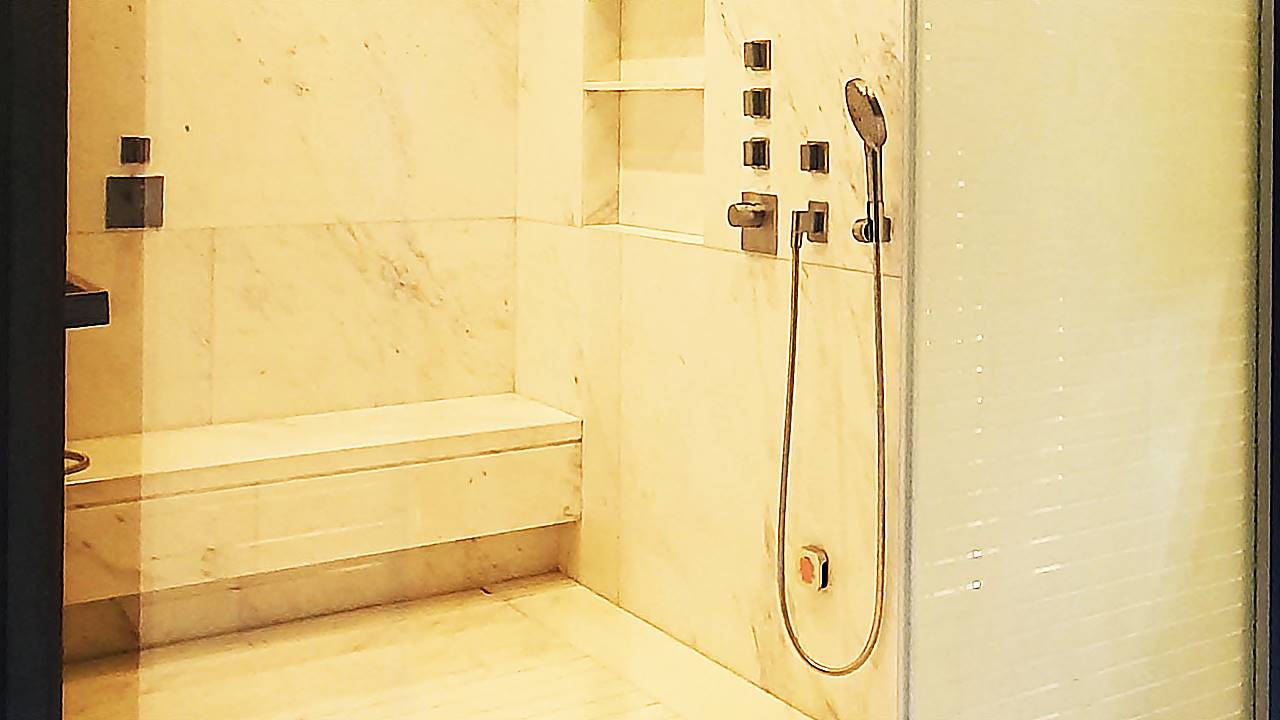A steam shower or sometimes also called a steam bath is a bathing system where a humidifying steam generator produces water vapor that is dispersed around a person’s body.